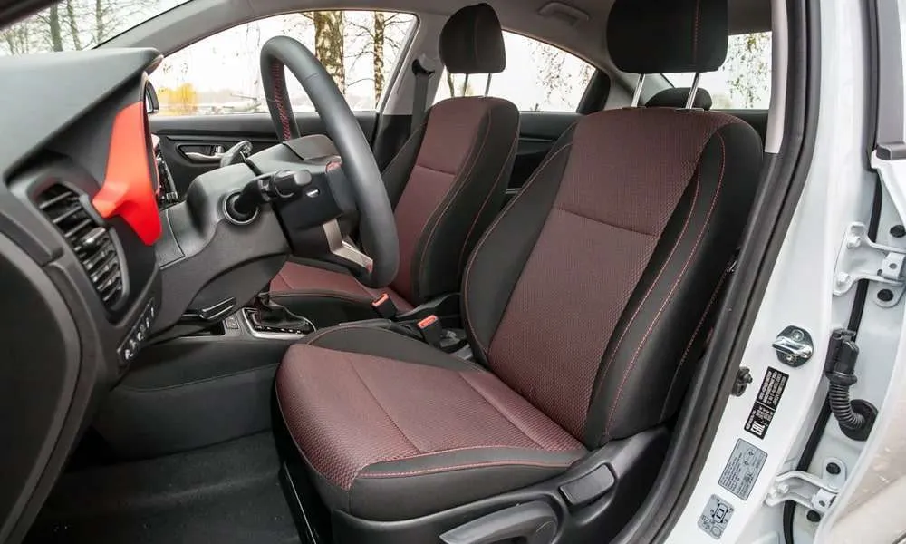 | Сиденья с отделкой тканью Style и красной прострочкой |